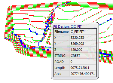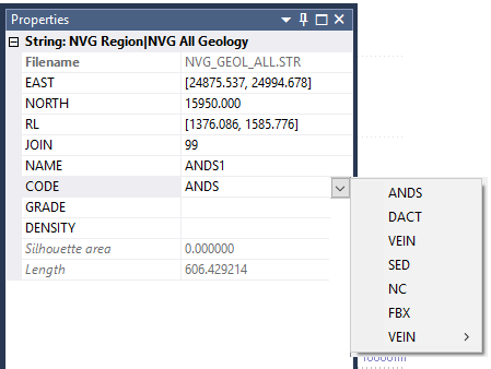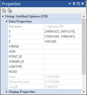 The Properties of an object are updated automatically when a function or tool is used to modify that object. If you click on the Measure tool to measure a string, for example, the Property pane is displayed on the right-hand side of the Vizex display. In this case, the Properties pane is updated automatically as you measure the length of the string.