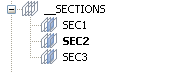 - Double-click on the sections listed under the node of a section control file. When a section is current, it is shown as bold in the list of sections, and the section view is applied to the Vizex display.