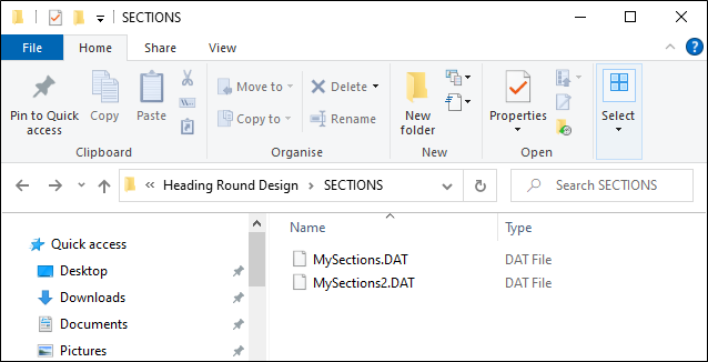 The default location for section control files is a SECTIONS sub-folder underneath the current project folder.