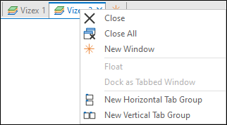 Alternatively, tile tabbed windows in the workspace by clicking Tile Horizontally or Tile Vertically on the Vizex tab, in the Windows group: