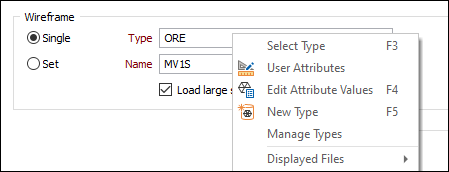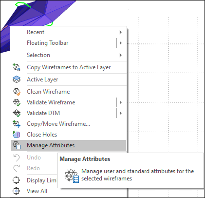 Tip: You can also right-click and select Manage Attributes in Vizex to edit the attributes of the wireframes that are currently selected. In this case, if the selected wireframes are of differing types, then only the standard attributes and common user attributes of those wireframes will be displayed in the Wireframe Attribute Editor.