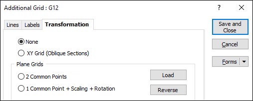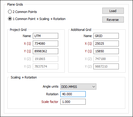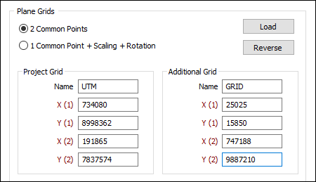 Click the Load button to to load a Grid transformation form set created in Survey | Coordinates Systems | Plane Grids.