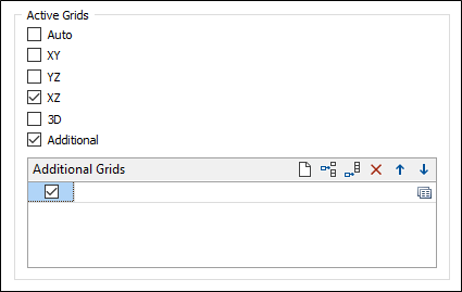To individually show or hide additional grids use the check boxes in the Additional Grids list: