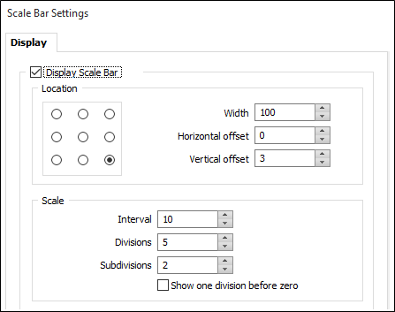 Use the grid to select the (Top Left, Middle Centre, Bottom Right etc.) location of the scale bar in the display window.