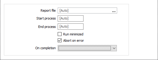 The End process value allows you to stop (exit) the macro execution before the end of the macro file is reached. The number you enter in End process corresponds to the number of a record in the last macro or macro package file that will be used in the run.