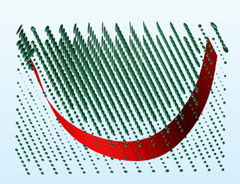 Here the ellipses on the trend surface are flattened: