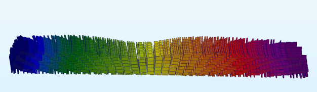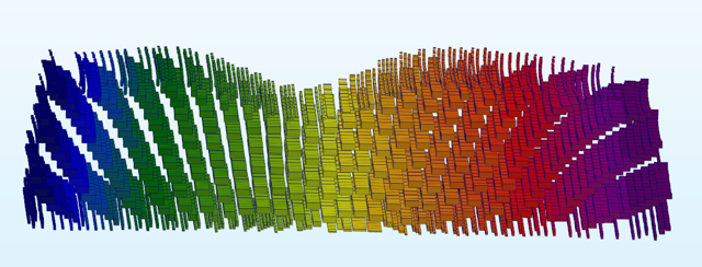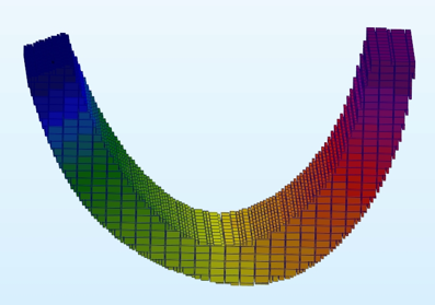Set the Strength parameter to 3, and the process will unfold and stretch the model in a direction normal to the trend surface: