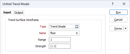 The default Strength value is 1, in which case the unfolded trend surface is uniform in all directions: