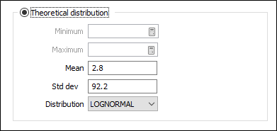 When the Distribution is UNIFORM, enter Minimum and Maximum values to limit the extents of the distribution. Alternatively, click the Calculate buttons to obtain the values from the Y-axis file.