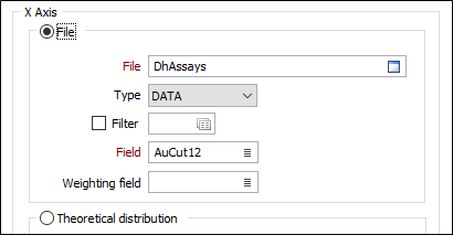 For the X Axis, select an option to either define a File/Field distribution (as per the Y axis), or define a Theoretical distribution: