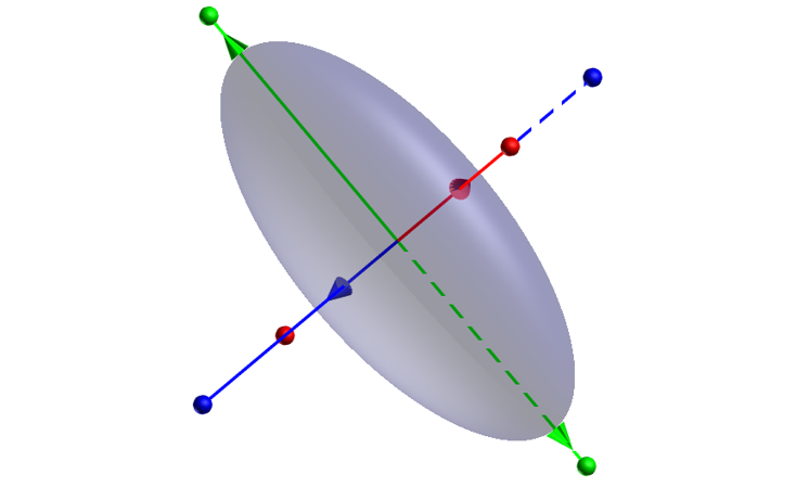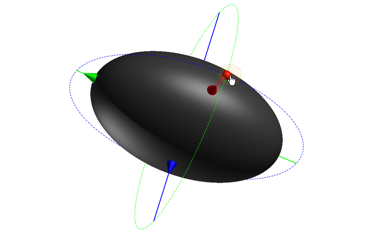 - Dragging one of the spherical end-point handles will rotate the ellipsoid