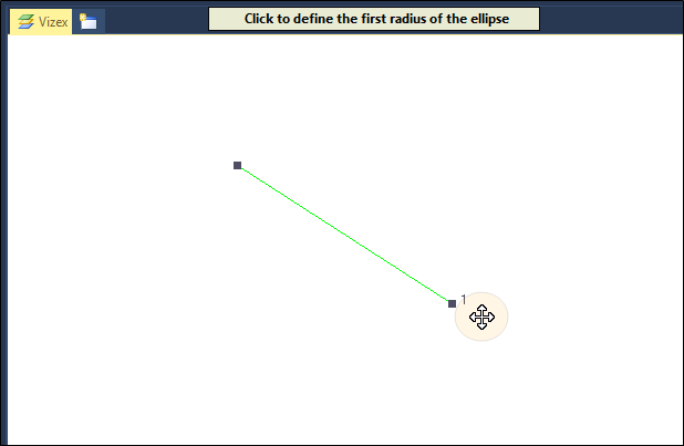 When activating interactive edit mode, if the axes of the ellipsoid are not fully defined, a create mode is activated which allows you to draw an ellipse on the screen: