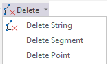 On the Design tab, in the Editing group, new Delete Point and Delete Segment tools have been added to a new tool menu alongside "Delete String". These tools complement existing action shortcuts.