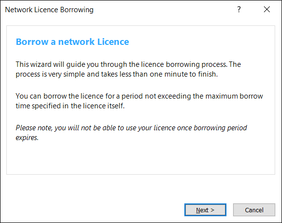6. Вы не сможете произвести заимствование лицензии, если до окончания срока действия сетевой лицензии остался 1 день, или если превышено максимально допустимое время. Период заимствования по умолчанию составляет 7 дней (максимальное время заимствования настраивается персоналом, занимающимся лицензированием Micromine, и по умолчанию период составляет около 30 дней - системный администратор может переопределить время заимствования на меньшее значение через конфигурацию сетевого сервера LM-X).