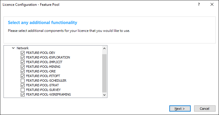 3. Нажмите на кнопку Далее. Если вы выбрали сетевую лицензию, она будет связана с группой компонентов. Пометьте галочкой поля рядом с компонентами, которые доступны для вашей лицензии и которые вы хотите использовать: