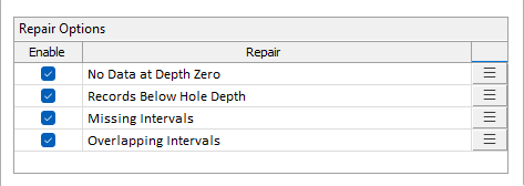 Details for each repair process enabled can be configured using the Repair Options grid - for example, Overlapping Intervals: