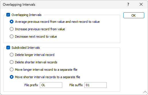 The Split inserted lengths to option is used to enter the split length of inserted intervals where splitting is necessary while retaining the original intervals.