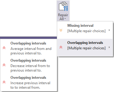 The overlapping interval repair options have also been added to the Repair and Repair All menus.
