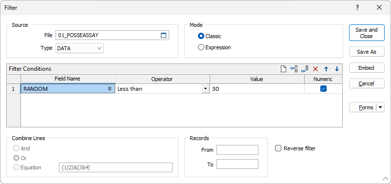 Rule filters can be created using the Classic method of grids and fields in the Filter form, or using an Expression when the relevant Mode option is selected.