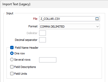 While most field name header rows occur at the start of a file, they do not always. If necessary, you can right-click (F4) in the File response box to view the contents of the Input file. If field name header lines exist make sure they are not ignored!