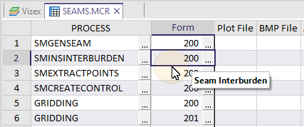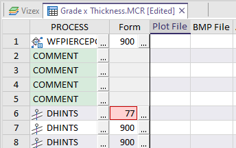 When rows are disabled, the process name is prepended with an exclamation mark (macro comment marker), the process column and the form set column are greyed-out and the row is skipped during execution of the macro.