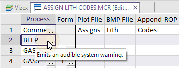 BEEP Sounds the computer speaker. In the Par field enter the number of times <n> that you want to sound the computer’s audio tone.
