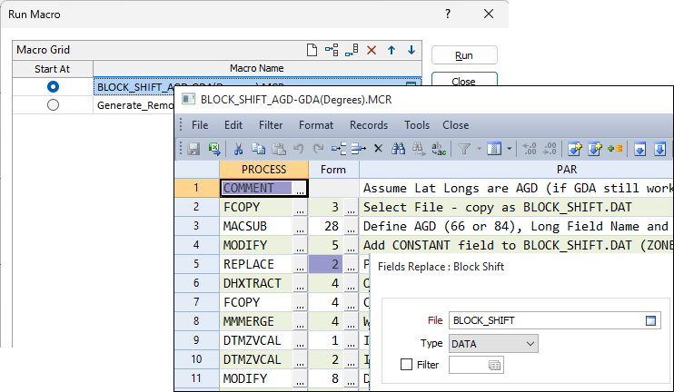 You can edit the forms referenced by a macro prior to running the macro. When you right-click on a process in the Run Macro form and select Edit, you can right-click on a form cell in the Macro Dialog Editor and edit the form.