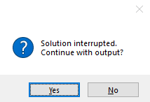 Press ESC to terminate the solver manually at any time. You will be prompted to confirm the interruption of processing. Click “Yes” to direct the solver to terminate at the first available opportunity.