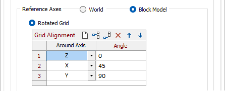 These rotations must be specified in the order in which they are to be applied, with each rotation specified relative to the orientation of the axes following the completion of the preceding rotation. (This is identical to the methodology used for specifying rotations for search ellipsoids in resource estimation.)