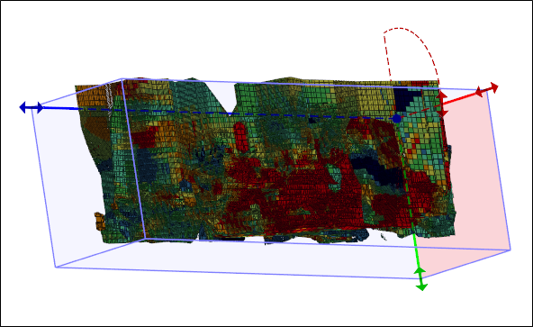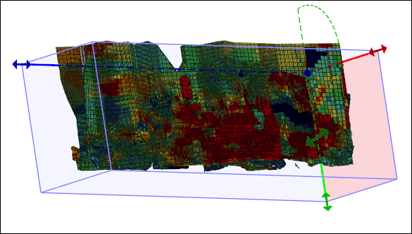 Grid lines will be shown on the grid (red) face to demonstrate how the stopes will be gridded.