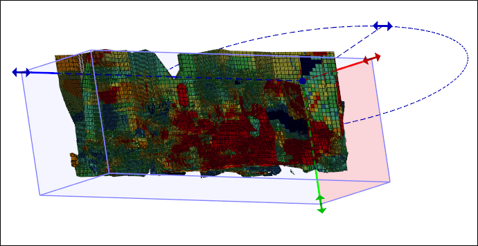 Handles at the corners of the grid rectangle can be dragged to manipulate the across-strike, vertical and along strike orientation of the tubing grid: