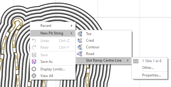 2. Alternatively, Right click on a pit string and select New Pit String > Slot Ramp Centre Line from the right-click menu.