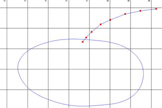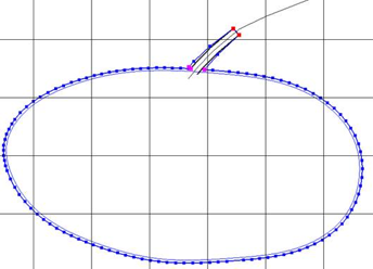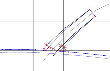1. After you dismiss the Slot Ramp Properties form, the cursor changes to a crosshair cursor. Use the mouse to digitise a centre line that intersects the pit string at the slot ramp entrance.