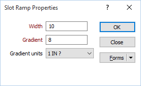 1. In the Slot Ramp Properties form, define the Width and the Gradient of the ramp you want to build: