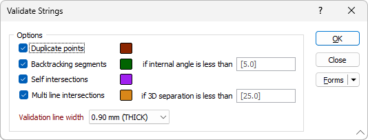 Multi-line intersections may sometimes be valid. You can limit the validation to those intersections with a 3D separation less than a specified distance. |