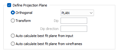 The Orthogonal or Transform projection plane can be used to define the direction in which the clipping string or outline will be stretched to create an open surface. If Transform is selected, the Dip and Dip Direction values can be entered to calculate the transformation.