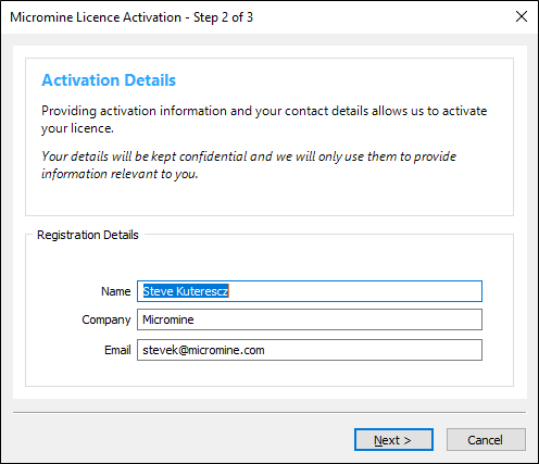 If there are errors while trying to activate your Micromine Australia Pty Ltd licence, please take a screenshot of the Error Details (including the code and message) and email Micromine Australia Pty Ltd Support on support@micromine.com