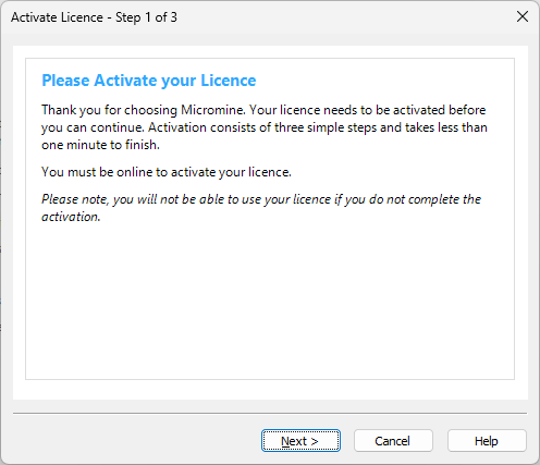 To activate a licence using an activation code supplied to you by Micromine Australia Pty Ltd Licensing: