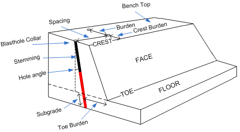 - Blasthole diameter (ie. the actual diameter, allowing for drill bit wear)