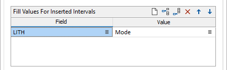 The Fill Values For Inserted Intervals grid is used to assign values to fields in the inserted intervals.