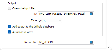 Select this option to automatically add the missing interval output to the specified drillhole database.