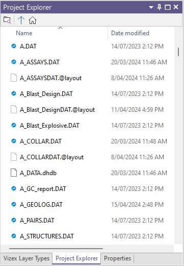 On the Window tab, in the Panes group: Click Project Explorer to hide/show the Project Explorer pane. Use the Project Explorer pane to explore the files and folders of the current project.