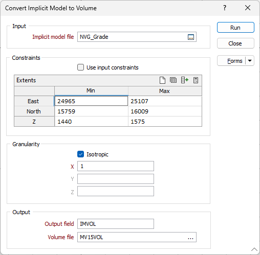 Click Run to convert the implicit model file to a volume file.