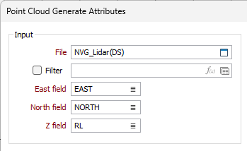 Specify the names of the point coordinate fields in the Input file. These fields will be disabled for some input file types.