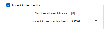 Enter (double-click or click the List icon to select) the name of the Local Outlier Factor field in the Input file.