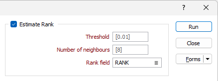 The Estimate Rank group is used to calculate the following rankings for a set of points: