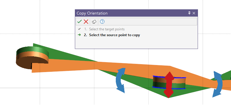 The orientation of the selected target points will be modified to match the orientation of the selected source: