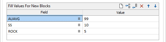In the Fill Values for New Blocks grid, you can specify the values to be written to selected fields for new blocks in the expanded model.