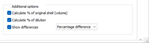 Select the Calculate % of original shell option to calculate a percentage value for the volume of the original shell that is included in the evaluation.
