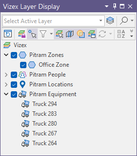 When a group is configured, it is displayed in Vizex and appears in the Vizex Layer Display panel. Each unit within a group layer is displayed in the layer tree for the group: